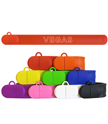 - Combining the popular style of the slap bracelet with today's technology, the adds whimsy, functionality, and a touch of nostalgia to your customers' marketing efforts. Constructed of metal encased in colorful and comfortable-to-wear silicone, the wearable flash drive features a large imprint area for your logo or message with an attached cap to reveal the USB port. A perfect promotional solution and available in nine bright colors.