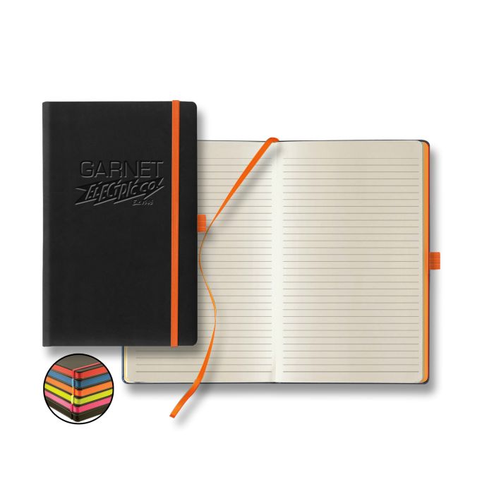 - Customers will write down great reviews about your company when you distribute these journals! Measuring 5 1/4" x 8 3/8, the Tucson Edge Medium Ivory Journal includes a pen loop, elastic closure and lined pages in gray print on 224 pages of FSCĀ® certified ivory paper. It's also equipped with a back paper pocket and a gold ribbon marker. It's a great choice for seminars, business meetings, tradeshow giveaways and much more. Get extra brand exposure by taking advantage of our imprint options!