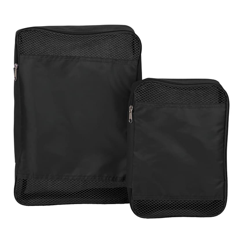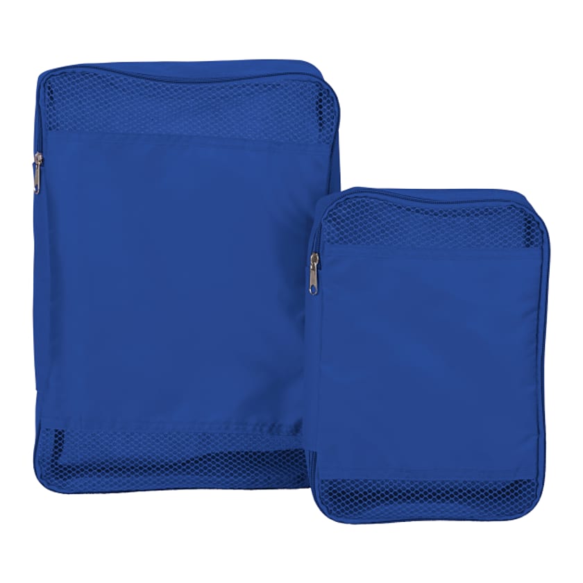 - The Bullet Packing Cube Set helps you stay organized while you travel. This packing cube set includes two sizes, one medium and one small, which allow you to keep your items organized and safe. These packing cubes fit into one another for easy storage. The zippered main compartments feature ample room to pack jewelry, tech accessories, clothing or hygiene products, while mesh accents allow you to easily identify your belongings. The Bullet Packing Cube Set can be packed in your suitcase, bag or carry on for easy access. Big size:10.5"H x 14"W x 3"D. Small size: 7.25"H x 10.5"W x 2.5"D.