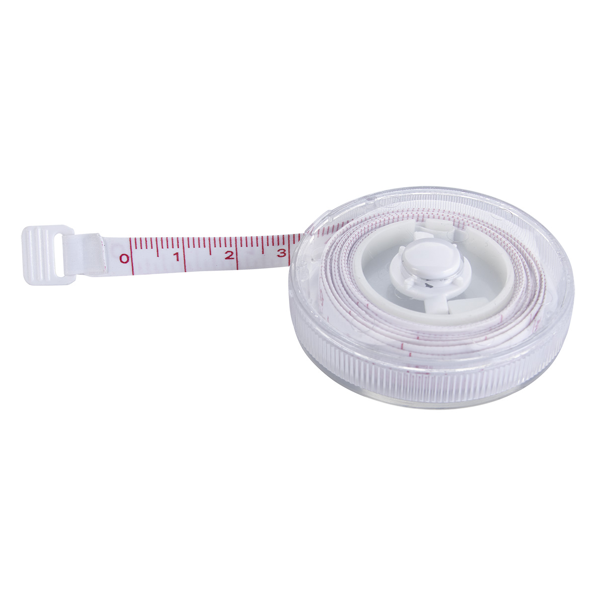 - 5' Retractable Plastic Tape With Push Button Locking Mechanism