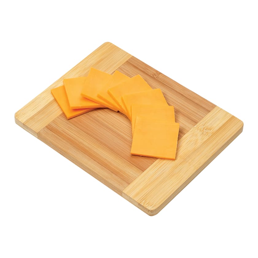 - This natural bamboo cutting board has a slim design making it easy to store in a drawer or where space is at a premium. Cutting board measures 7.8" x 6.05". Do not use decorated side of cutting board for cooking. Chop items on blank side of the board.