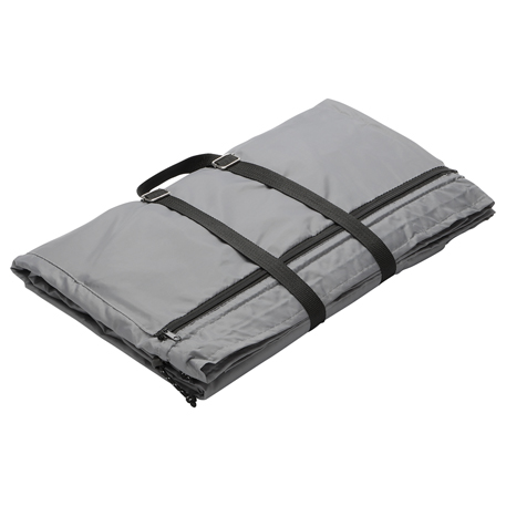 - The 3 in 1 Adventure Blanket is the best companion on any type of adventure or travel. Unfolded the blanket is oversized at 60" by 70" with a warm fleece lining and a waterproof exterior. This blanket also functions as a poncho. Simply pull out the hood from the pocket compartment and tighten the drawstrings to fit. The blanket can also be used as a sleeping bag by snapping up the front and bottom of the blanket together. Blanket measures 20" x 8.5" folded. Free embroidery run charges on up to 10,000 stitches.