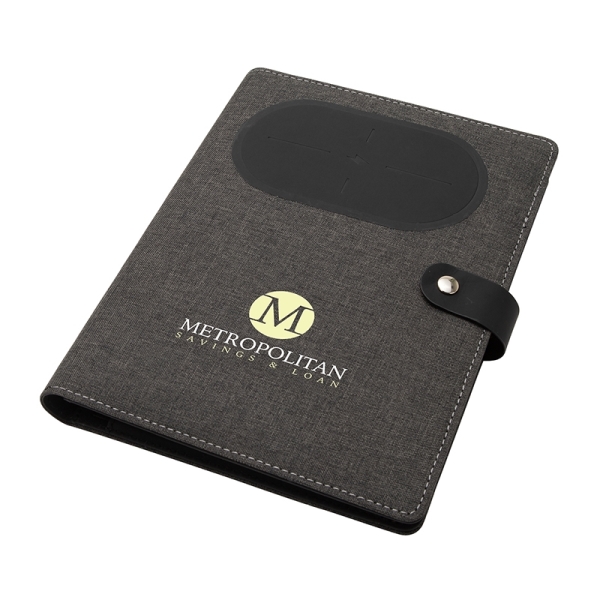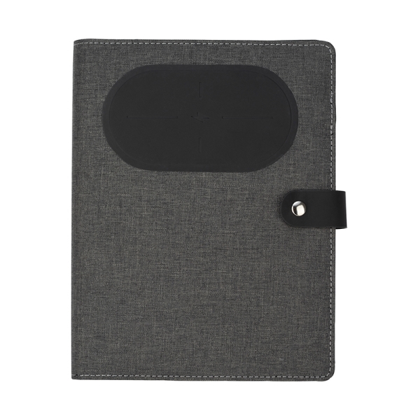 - The Navigate Notebook has a wireless phone charger, a professional look and is perfect for notetaking in work meetings and conferences. It has 50 sheets of lined paper in the spiral replaceable notebook, an interior pocket for your phone or power bank, an elastic pen loop, elastic cable organizer and an interior slip pocket for notes. Wireless charging enabled phones charge upon contact when notebook charger is plugged into a computer, wall charger or power bank with the included micro USB cable. The Navigate Notebook is a great gift to welcome new hires!
