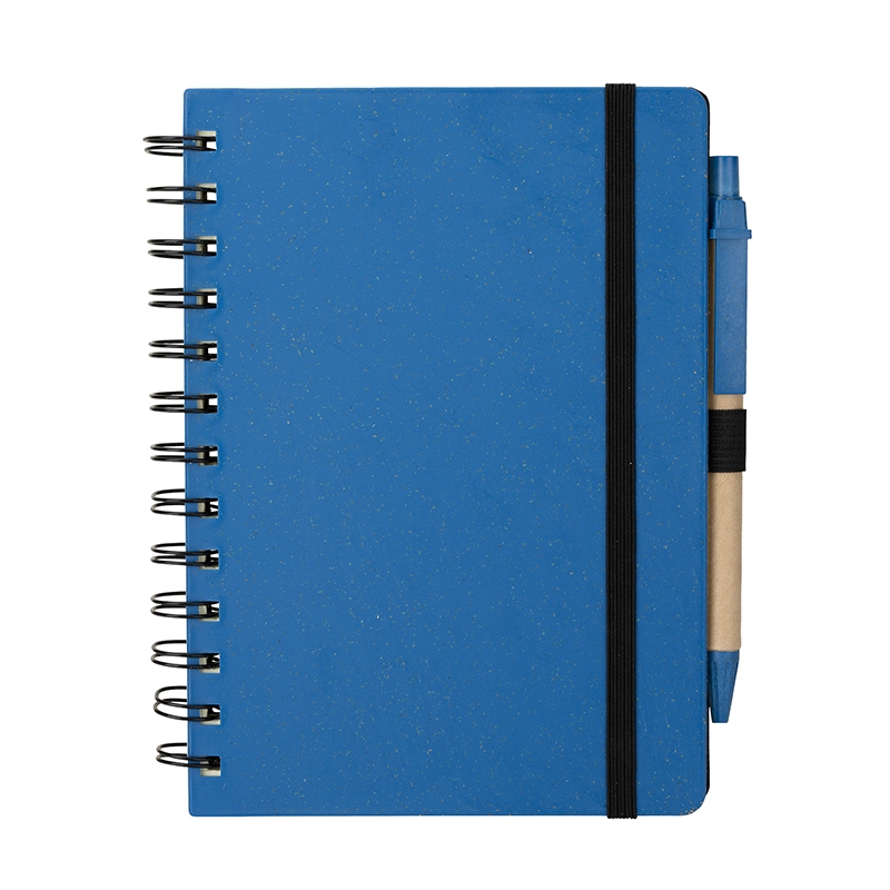 - The Venture Junior Notebook & Pen has a cover made from a 30/70 blend of renewable wheat straw, which is the stalk left over after the harvest of wheat grains and polypropylene plastic. It has 70 lined pages, elastic band closure and a pen with blended wheat straw trim and a recycled paper barrel.