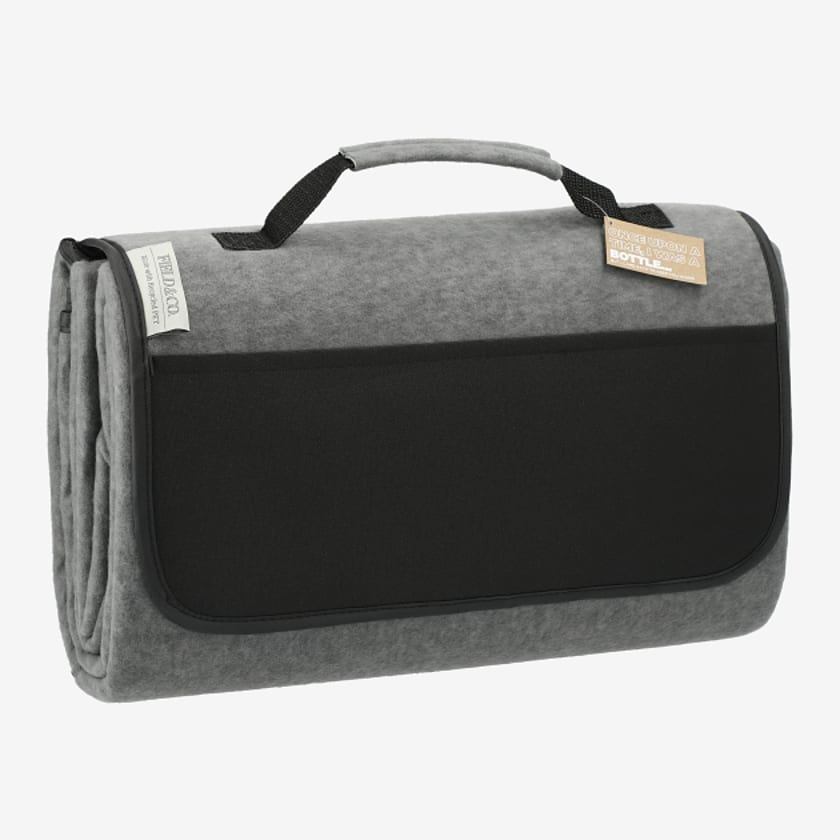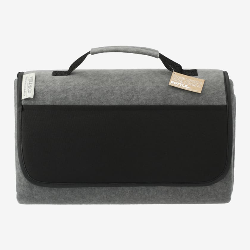 - Make your picnic environmentally perfect and spacious with this Field & Co., oversized, recycled picnic blanket. This blanket features a soft fleece backing made from 100% recycled PET materials and a moisture resistant backing. The large pocket on the front displays your logo proud and will make carrying key tools like a corkscrew, hand sanitizer, mask and your keys much more convenient. The oversized 60"x70" unfolded dimensions will allow for plenty of space between you and your companion and the folded dimensions are 15" x 10".