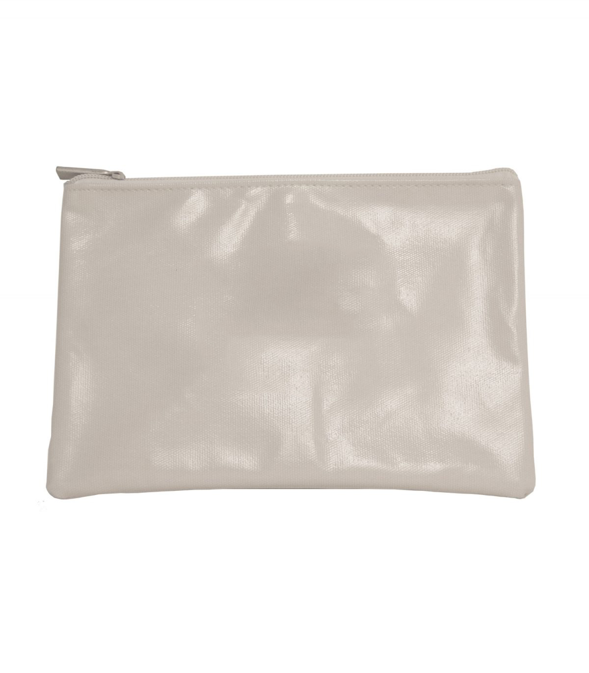 - Carry the things you need safely and securely in this versatile zippered pouch. This laminated tote is made of 12 ounce canvas with a nylon lined interior. It makes a great cosmetics bag for your purse, a toiletry case for traveling, or a place to keep your pens and pencils, craft supplies or tools. Choose from bold colors to create a cost-effective giveaway for marketing and social events and activities. Complies with Prop 65. 9? W x 6? H