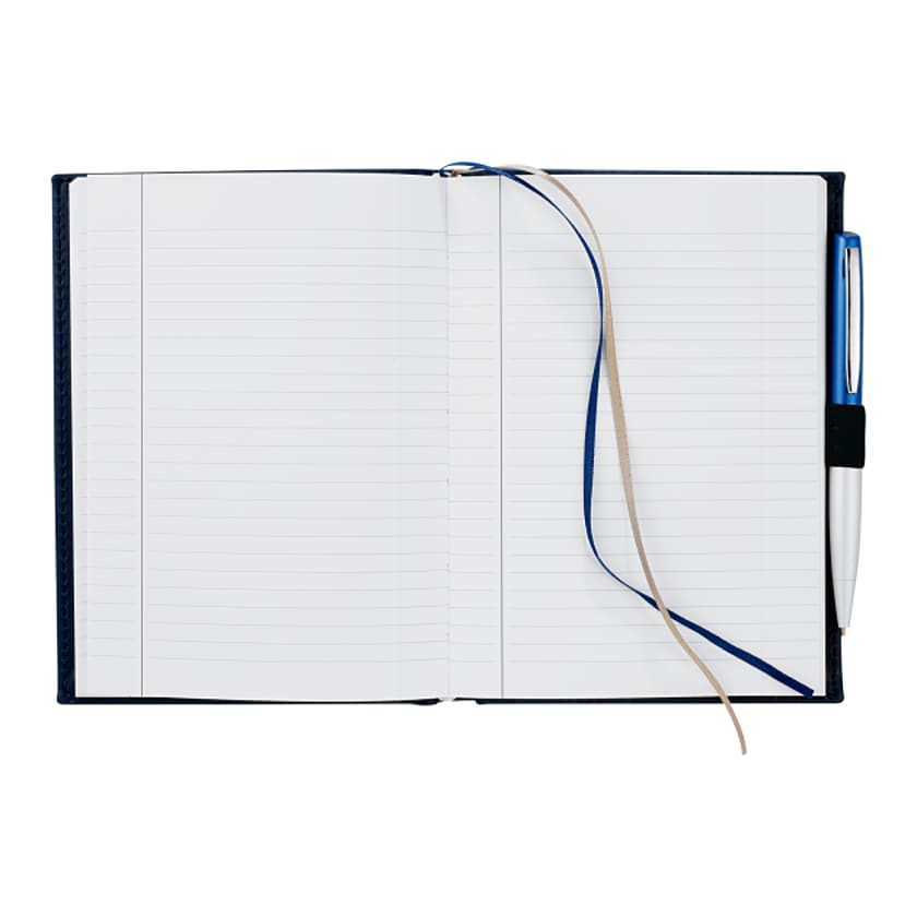 - The Pedova Bound JournalBook is a hard cover, bound journal with an elastic pen loop (pen is not included). This specialty notebook features blue and silver ribbon page markers. The Pedova Bound JournalBook includes 125 sheets of white lined paper.