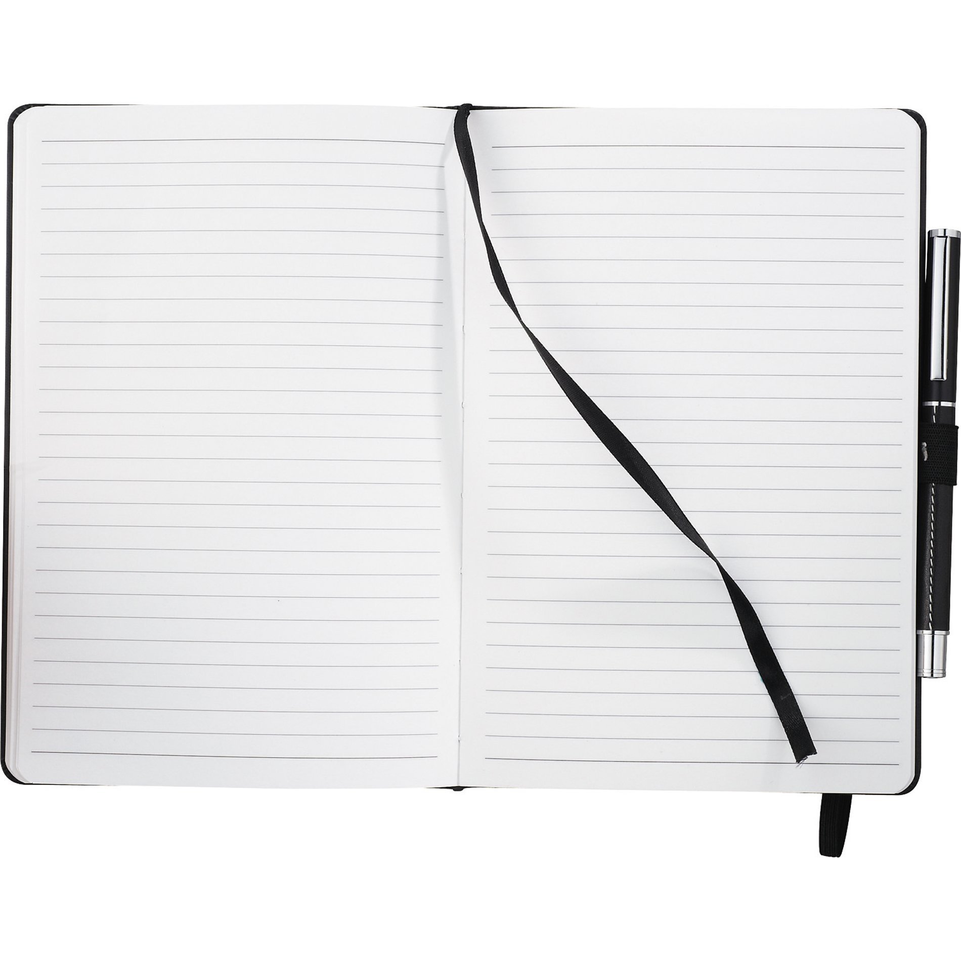 - Hard cover, bound journal. Elastic pen loop. Built-in elastic closure. Stitched cover. Corresponding cover color ribbon page marker. Expandable accordion pocket. Includes 80 sheets of white lined paper. Pen is not included.