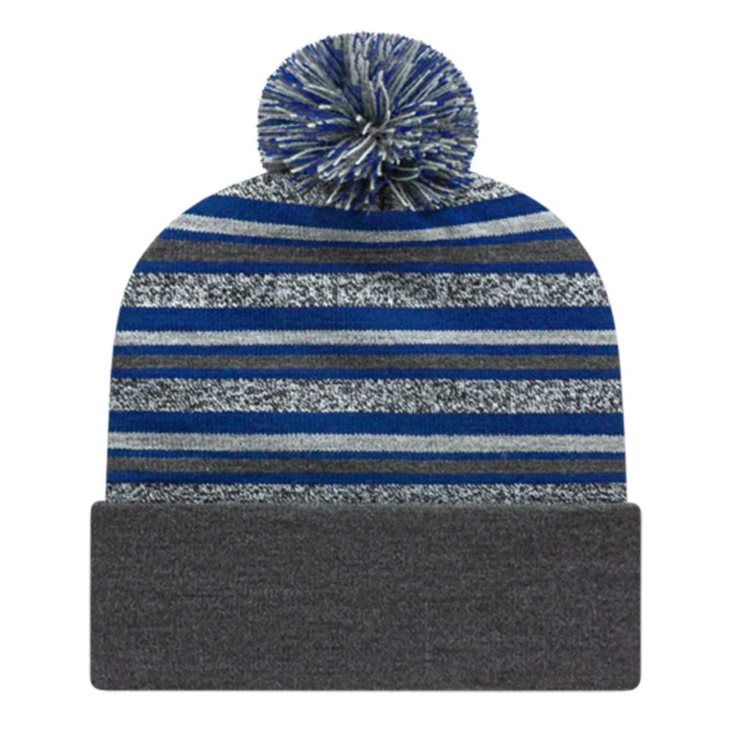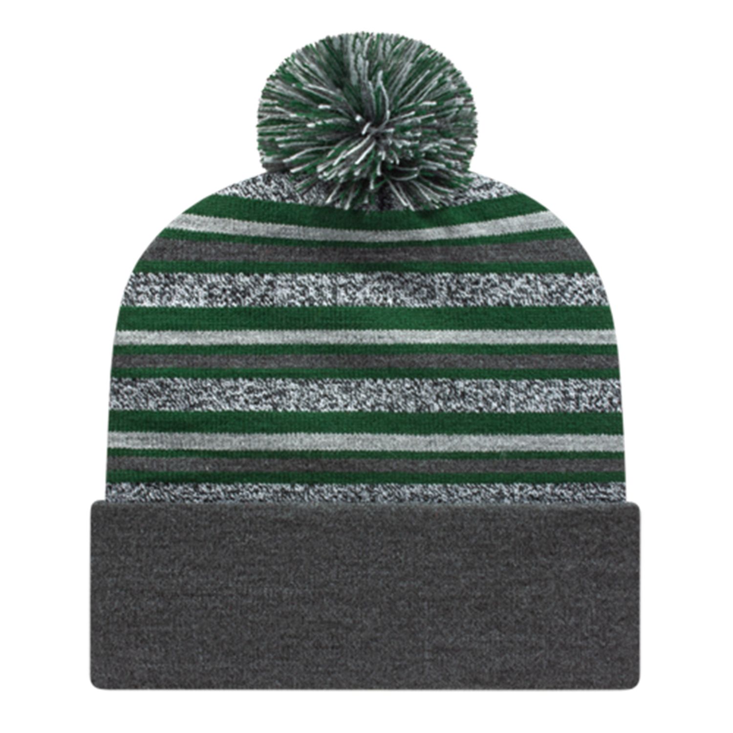 - Alternating stripes of black and white variegated yarn with dark heather, heather, & one accent color