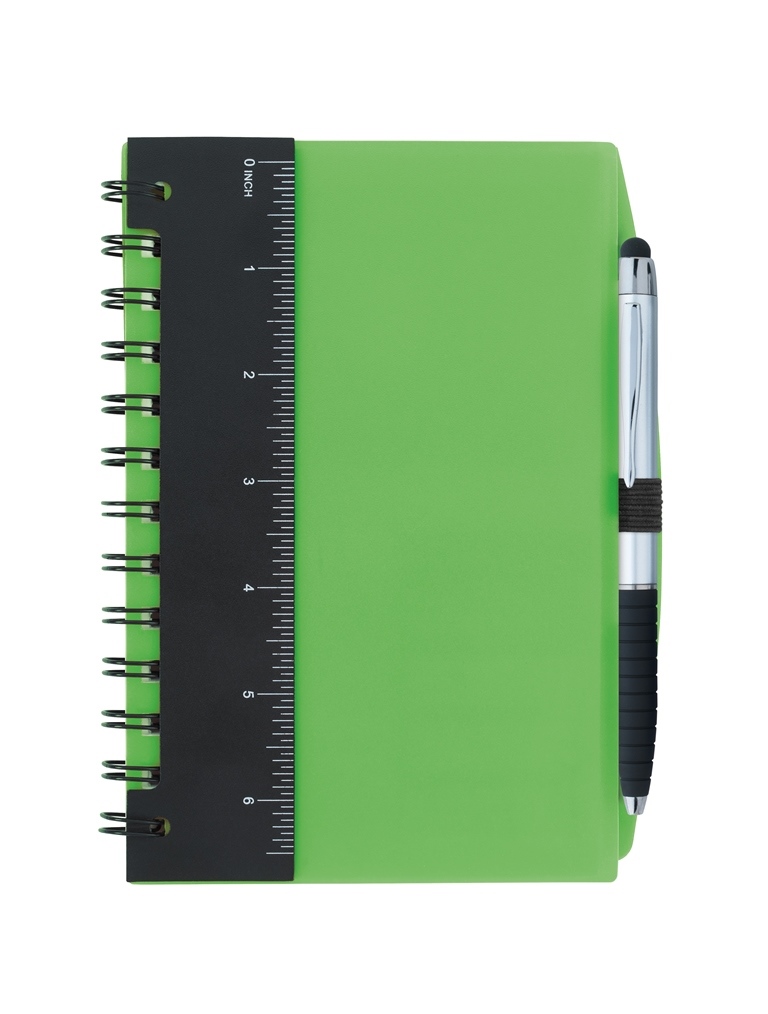 - This handy notebook comes decked out with a detachable ruler and Silver Cool Grip Stylus Pen inserted into an elastic pen loop. The compact size makes it the perfect companion at important meetings.
