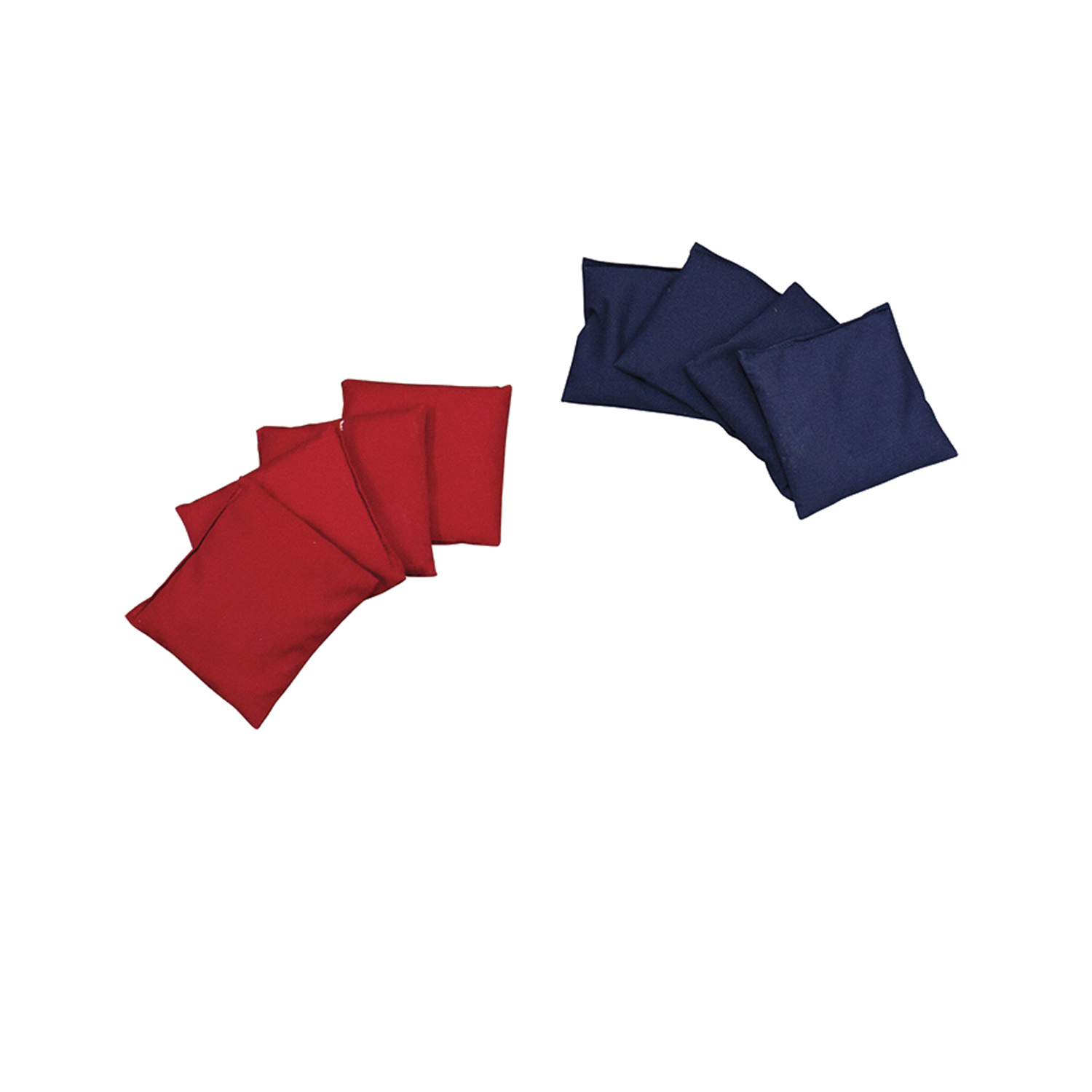 This set includes 8 bean bags (4 red, 4 dark blue)