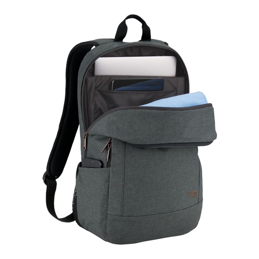 - The Case Logic ERA is a 15" PolyCanvas laptop backpack with a spacious main compartment that features a thickly-padded storage sleeve for laptops up to 15.6", plus a dedicated slip pocket for tablets up to 10.5". It also contains an additional storage compartment with an organizer panel, two side pockets designed for water bottles, and a quick-access front pocket for your small electronics and go-to items. The Case Logic ERA 15" Computer Backpack has a luggage strap that securely attaches to almost any rolling suitcase, ideal for airports and travel. With heathered material, copper touch-points, and stylish trim details, this durable bag has a modern, professional look.