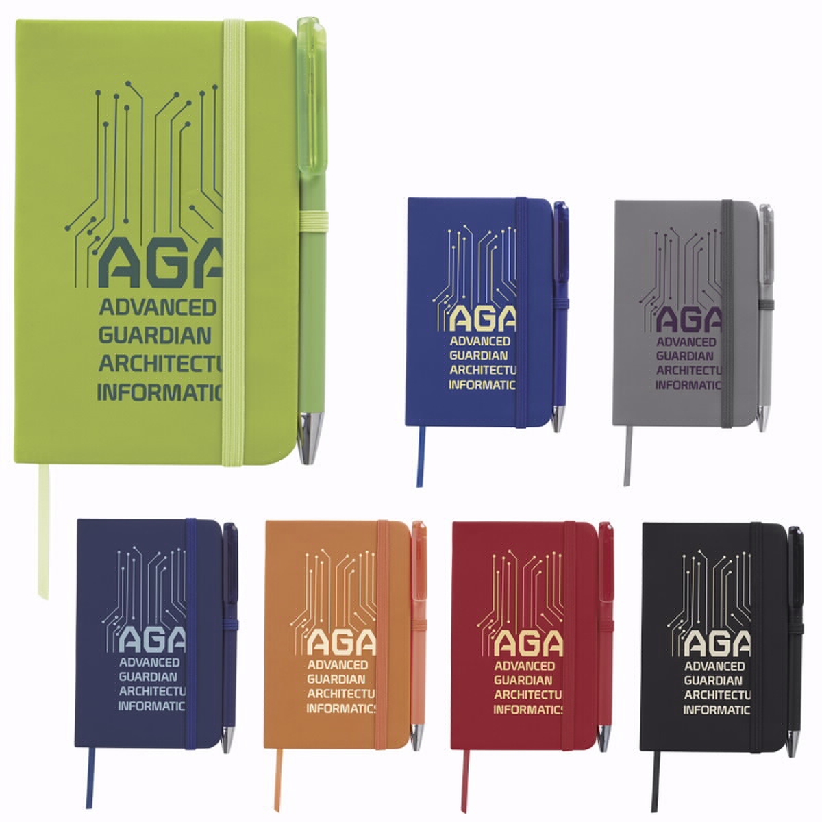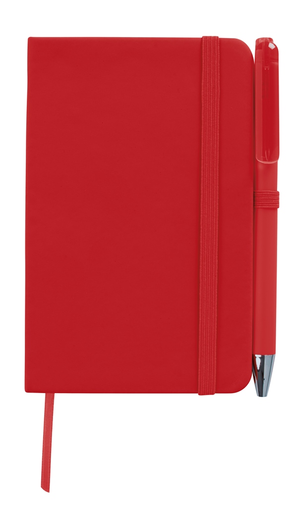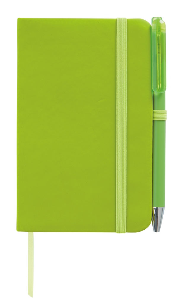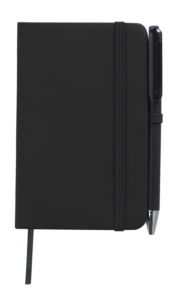 - Take this mini notebook/pen combo with you when space is limited. Its bookmark, elastic band closure, and 50 sheets of lined paper will keep you organized throughout the day.