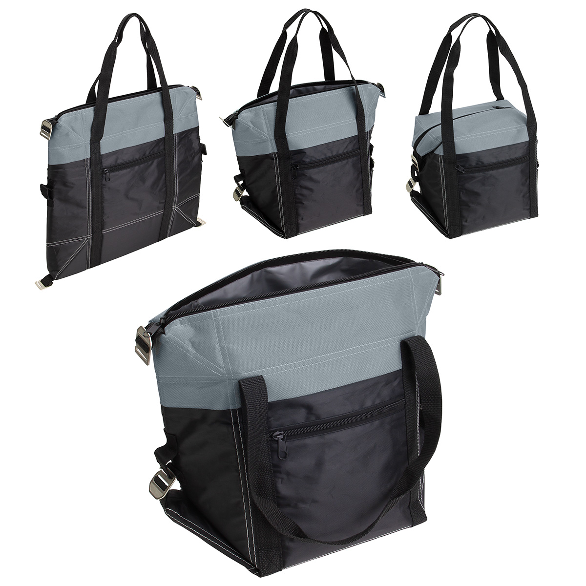 - This bag cleverly converts into 3 sizes of cooler bag!