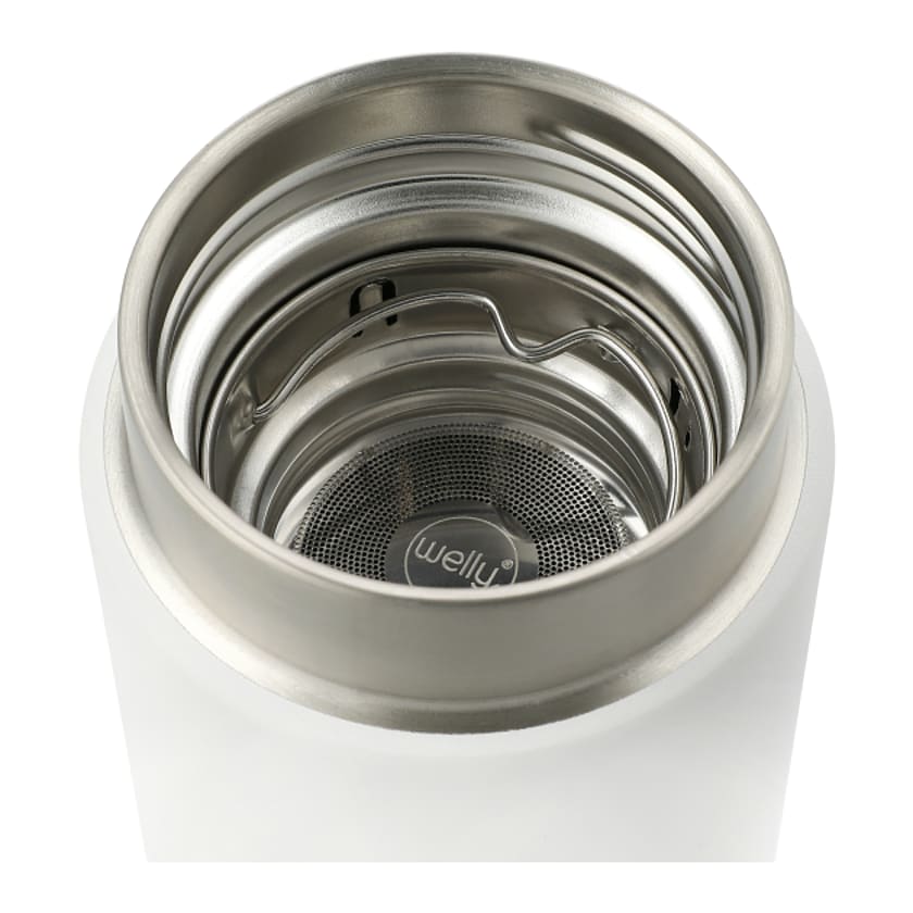 - The Welly Traveler Copper Vacuum Bottle 18oz features durable, double-wall stainless steel construction with copper insulation to chill beverages for 48 hours or keep drinks hot for 12 hours. This rugged 18oz bottle includes on-trend powder coating, a screw-on lid, and a natural bamboo wrap, plus a removable, easy-to-clean fruit infuser for adding fun flavors to water. Welly contributes 1% of sales toward construction of wells in areas without clean water. Learn more at wellybottle.com.