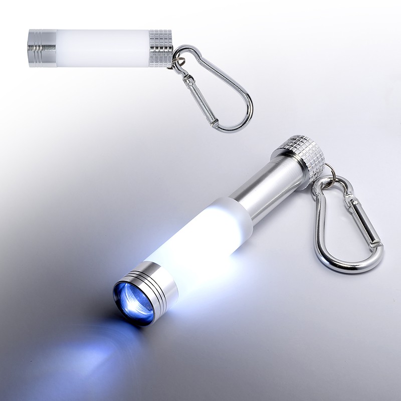 - • Expandable telescopic flashlight made of ABS Plastic with Aluminum end panels and carabiner (carabiner measures approx. 1.65"l).