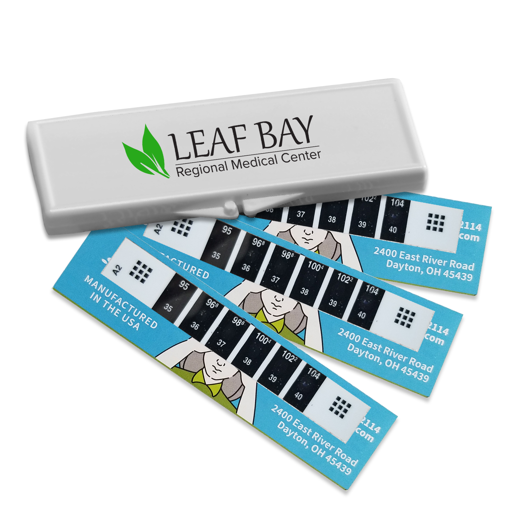 Ideal for promoting wellness programs and healthcare services, this forehead thermometer kit offers plenty of advertising possibility!