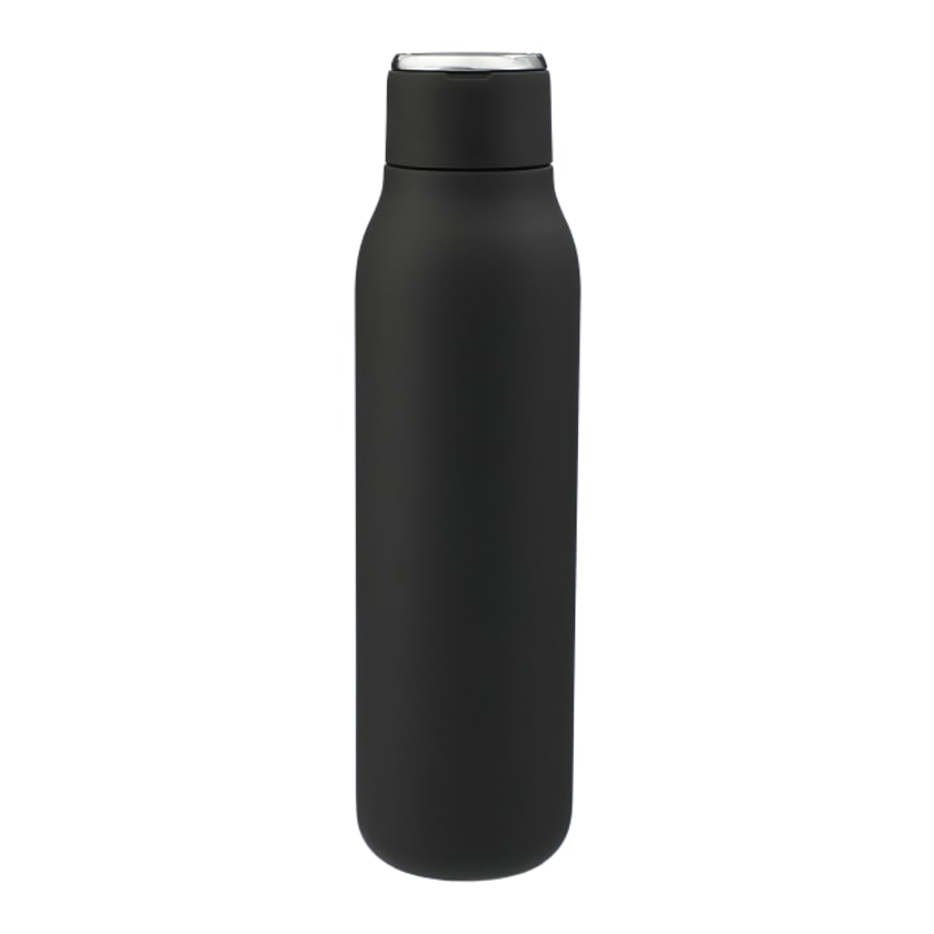 - The Marka Copper Vacuum Insulated Bottle features durable, double-wall stainless steel vacuum construction with copper insulation, which allows your beverage to stay cold for 48 hours and hot for at least 12 hours. The construction also prevents condensation on the outside of the bottle. Comes complete with the on-trend, durable, smooth-touching powder coated appearance and a screw-on, spill resistant lid and a durable, zinc-alloy hand loop. Fits most standard car cup holders. Leed's exclusive. 20oz.