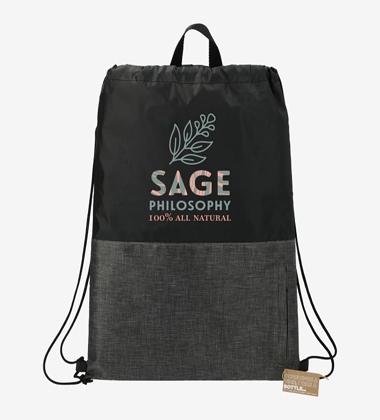 - The Ash Zippered Recycled Drawstring Bag features a vertical zippered front pocket to hold your essentials. This drawstring bag is made from recycled water bottles. This lightweight yet durable bag cinches shut tightly with an easy-to-use drawstring design. Through a partnership with 1% For The Planet one percent of sales of this and all EcoSmart products will be donated to nonprofits dedicated to protecting the planet.