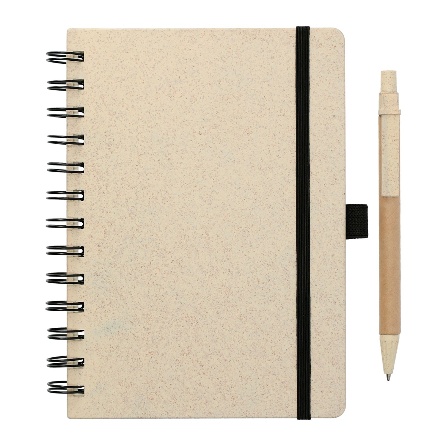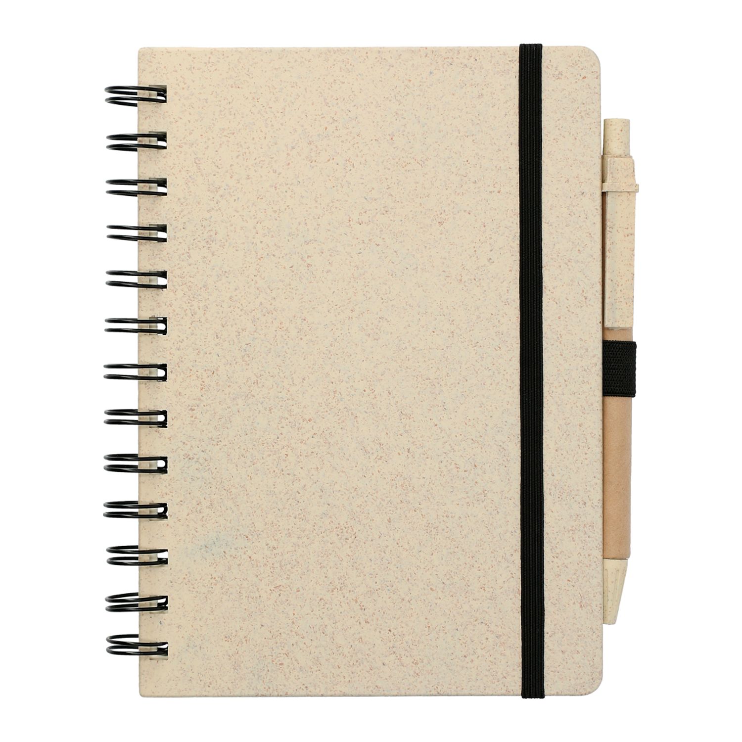 - The 5" x 7" Wheat Straw Notebook With Pen has a 51% wheat straw cover. It also features a black elastic closure and pen loop. It comes with a wheat straw color matching pen with black ink cartridge. This wheat straw notebook contains 70 sheets of recycled lined paper. Through a partnership with 1% For The Planet, one percent of sales of EcoSmart products will be donated to nonprofits dedicated to protecting the planet.