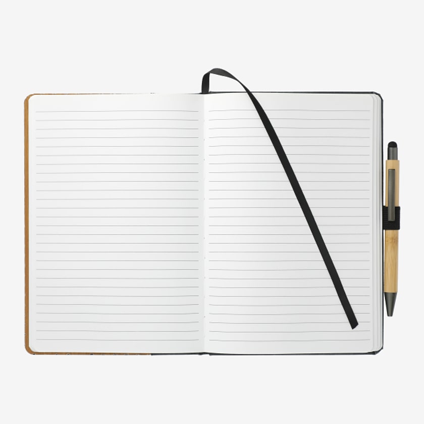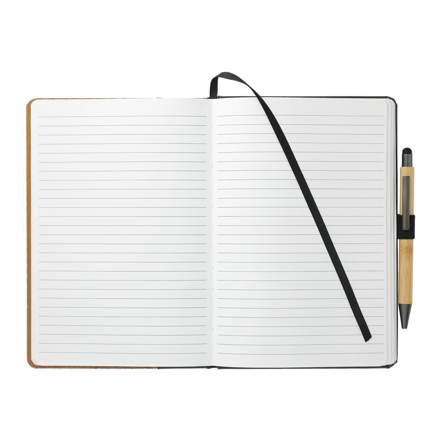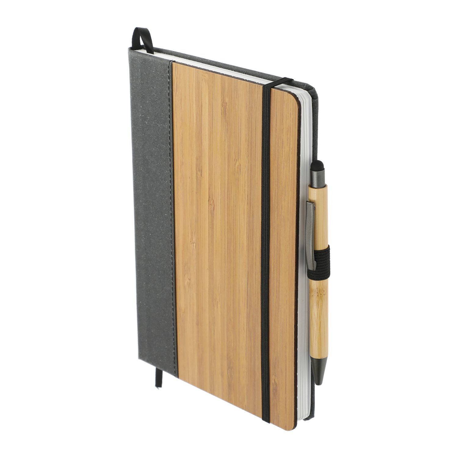 - The FSC® Bamboo Bound JournalBook Bundle Set includes the 5.5" x 8.5" Bamboo Bound JournalBook (2800-78) and Bamboo Quick-Dry Gel Ballpoint Stylus (1066-50). It features a unique bamboo cover with recycled leather accent. 80 sheets of recycled, white lined paper. Includes elastic closure, ribbon page marker and elastic pen loop. Through a partnership with 1% For The Planet, one percent of sales of all EcoSmart® products are donated to environmental nonprofits. Due to the nature of the material, there may be color variances.