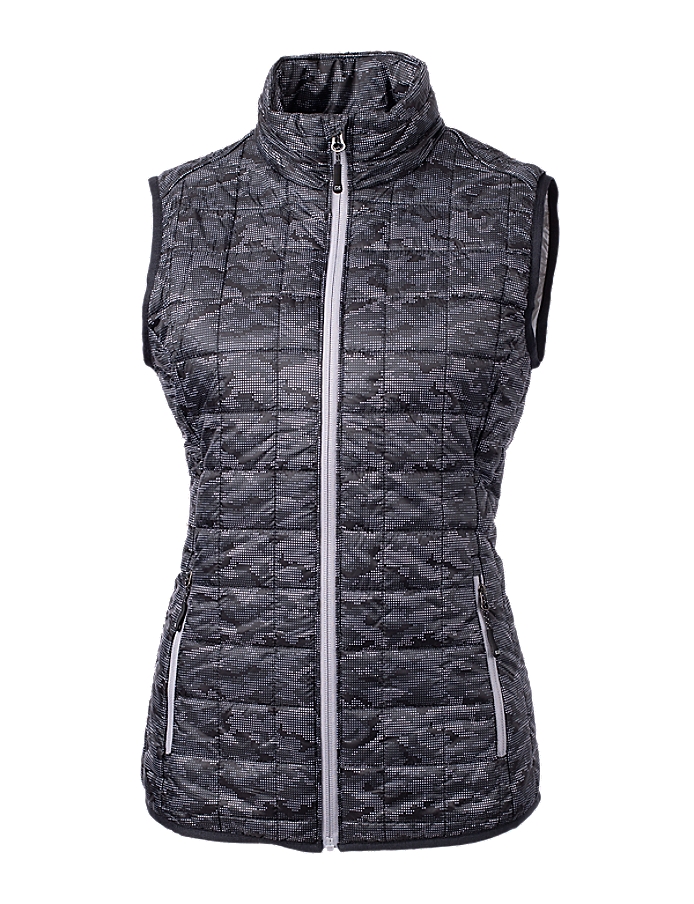 - The iconic and sustainable Rainier Printed Puffer Vest is engineered from lightweight, recycled, down-alternative insulation for exceptional four season versatility, designed to be your favorite insulated women's full zip eco-friendly puffer vest for work, golf, skiing, hiking, walking, and your other epic everyday adventures. The Rainier's Primaloft® Silver Insulation is crafter from 70% recycled polyester, keeping you warm so you can stay outside year round and make a difference for the planet.