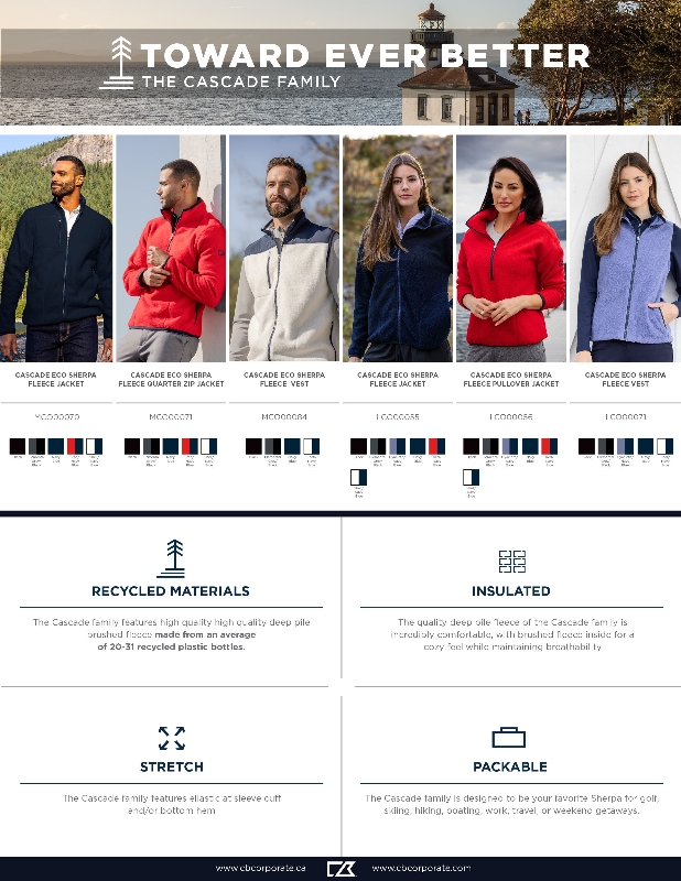 - Manufactured with an average of 25 post consumer recycled plastic water bottles, the iconic Women's Cascade Eco Sherpa Fleece Jacket works for harmony between nature and business. Engineered for exceptional warmth and versatility, designed to be your favorite women's full zip deep pile Sherpa jacket for golf, skiing, hiking, boating, work, travel, or weekend getaways. Our high quality deep pile Women's Cascade Eco Sherpa Fleece Jacket is incredibly comfortable, with brushed fleece inside for a cozy feel while maintaining breathability so you can be active and stay warm with unwavering quality and craftsmanship.