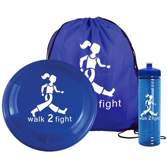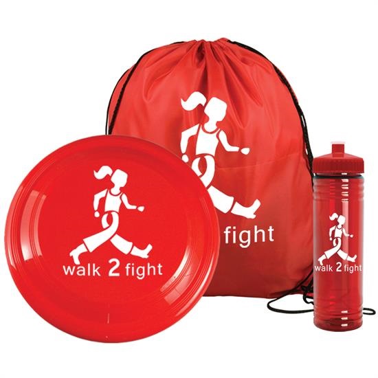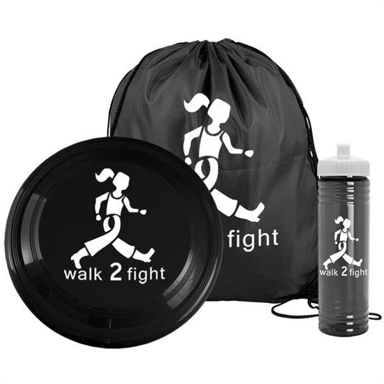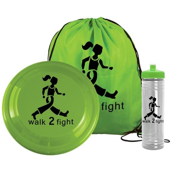 - Fun kit includes 1 color imprint on 15" x 18" Polyester Drawstring Back pack (DS1518), 9" Flyer (FLY9), and 24 oz. Slim Fit Water Bottle with Push-Pull Lid (TB24). Flyer and bottle are packed inside the drawstring back pack.