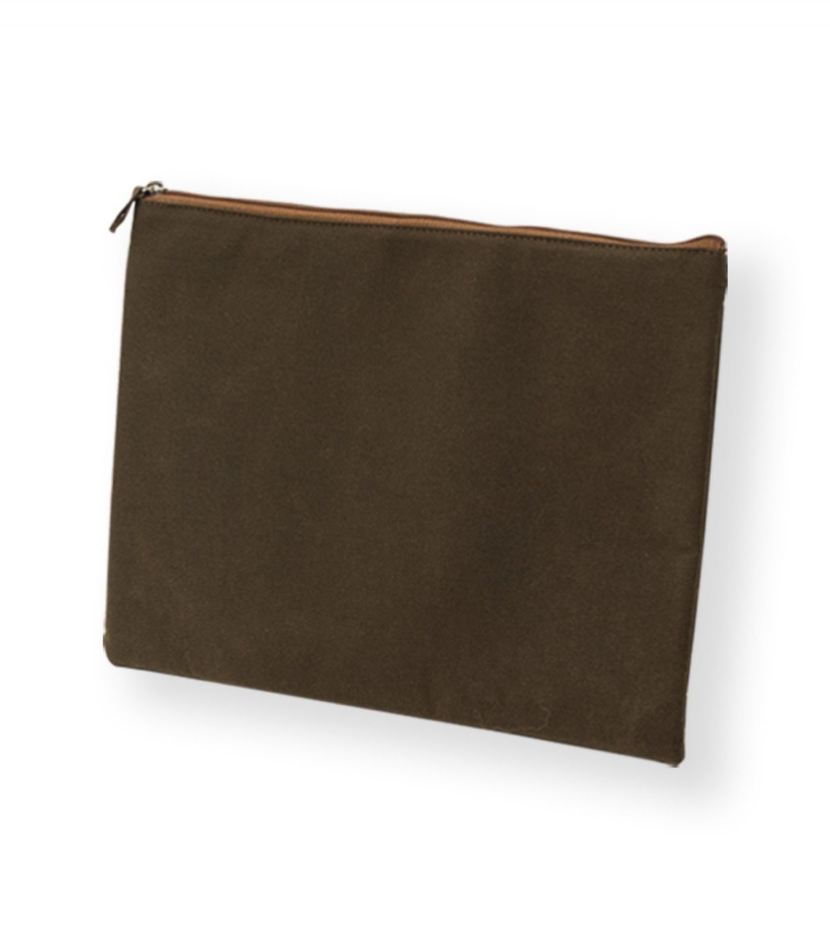 - Perfect size for your important documents as well as your tablet. Waxed canvas exterior and padded for protection. Zippered top closure.