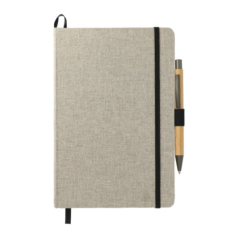 - The 5.5" x 8.5" Recycled Cotton Bound JournalBook® Set includes (2800-94) 5.5" x 8.5" Recycled Cotton Bound JournalBook® and (1066-49) Bamboo Quick-Dry Gel Ballpoint. The 5.5" x 8.5" Recycled Cotton Bound JournalBook® is the perfect journal for all of your notetaking needs. Features a recycled cotton, hard cover. Natural color elastic closure, pen loop and ribbon page marker. 80 sheets of FSC® Mix cream lined paper. Back document pocket. FSC label printed inside. Through a partnership with 1% For The Planet, one percent of sales of this and all EcoSmart® products are donated to environmental nonprofits.