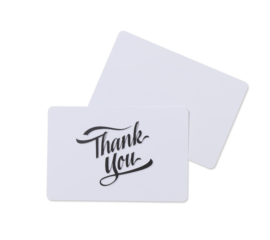 The Thank You is pre-printed on the front of the card and the back side is your canvas to add a special message to your design